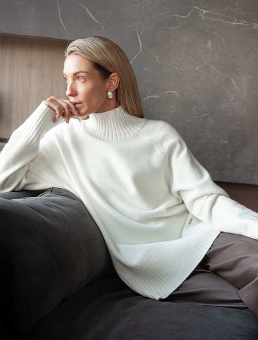 Состав: 52%ПАН (акрил) 33%ПЭ 8%ПУ 7%Кашемир Размер товара на первом фото: 42Джемпер с воротом стойка выполнен из мягкой пряжи с кашемиром. Модель свободного силуэта с рукавом реглан будет стильно сочетается с брюками и джинсами. Мягкая пряжа очень приятная к телу, поддержит комфорт на протяжении всего дня, при этом не перегревая. Сочетается в костюме с брюками D38.013, D38.012 и юбкой D36.016