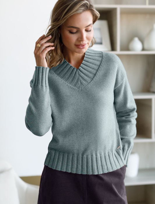 Состав: 52%ПАН (акрил) 33%ПЭ 8%ПУ 7%Кашемир Плотность: 7 GG Размер товара на первом фото: 42Джемпер выполнен из мягкой пряжи с кашемиром. Изделие дополнено высоким V-вырезом с широкой рибаной. Мягкая пряжа очень приятная к телу, поддержит комфорт на протяжении всего дня, при этом не перегревая. Сочетается в костюме с брюками D38.013, D38.012 и юбкой D36.016