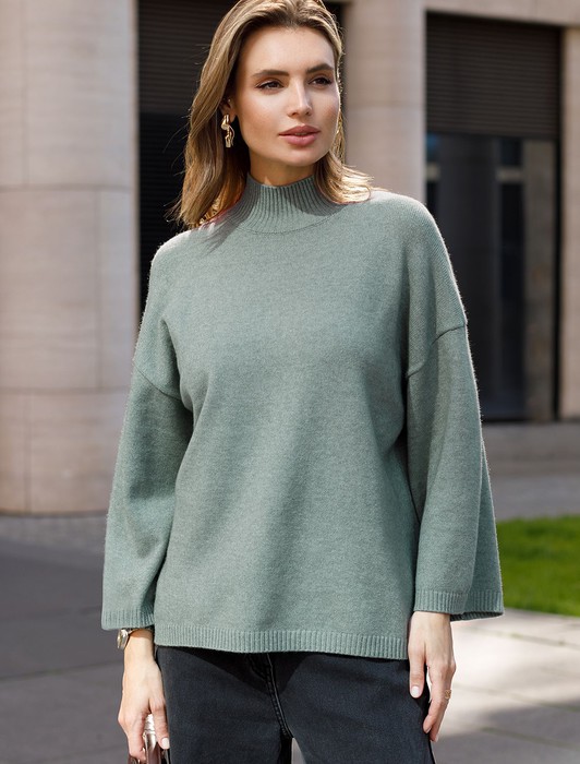Состав: 52%ПАН (акрил) 33%ПЭ 8%ПУ 7%Кашемир Плотность: 9 GG Размер товара на первом фото: 42Джемпер выполнен из мягкой пряжи с кашемиром. Фишкой изделия являются свободные рукава на одном уровне с низом, это выгодно подчёркивает силуэт визуально вытягивая его. Мягкая пряжа очень приятная к телу, поддержит комфорт на протяжении всего дня, при этом не перегревая. Сочетается в костюме с брюками D38.013, D38.012 и юбкой D36.016