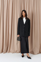 Джемпер полуприлегающего силуэта из трикотажного полотна. Горловина - цельнокроеная стойка. Рукав цельнокроеный, с подрезом   ниже локтя  и узкой длинной манжетой. По низу джемпера – притачная планка.