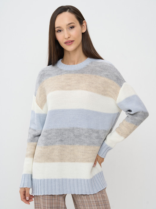 Джемпер NewVay 9242-94100 осеннее небо/молоко/св.бежевый/серый меланж