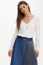 Женский джемпер Nika.pl. Мягкий трикотаж из акрила приятен к телу и дарит ощущение комфорта. Прямой  крой подойдет для фигуры любого типа. Модель дополнена  "вырезом-лодочкой" горловины и длинными рукавами. Рукава имеют длинную манжету с декоративными пуговицами. По низу джемпера манжета-резинка.