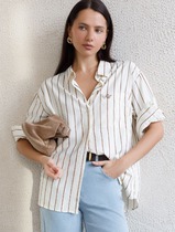 Блузка в полоску свободного силуэта с карманом из эластичного хлопка