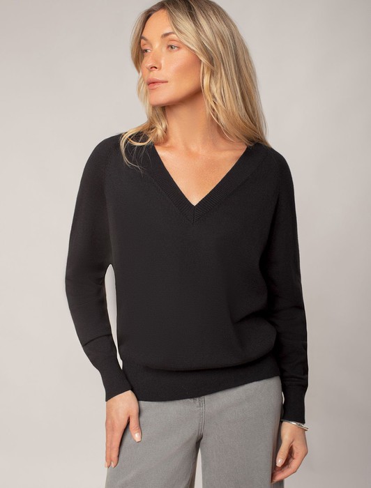 Состав: 70%Хлопок 21%ПА 9%Кашемир Плотность: 12 GG Размер товара на первом фото: 42Джемпер тонкой вязки выполнен из хлопка с добавлением кашемира. Модель с V-вырезом свободного силуэта. Мягкая и очень приятная пряжа в рубчик совершенно не колется, сохраняет тепло при этом не перегревая, гарантируя безупречный комфорт.