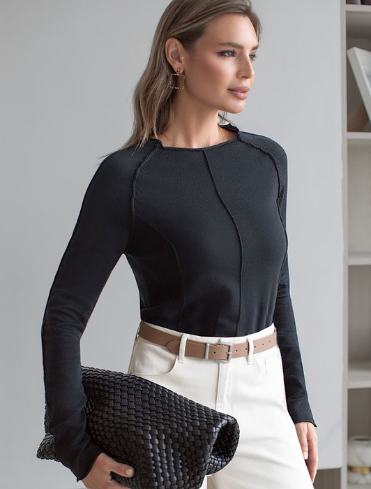 Состав: 82%Хлопок 18%ПА Плотность: 12 GG Параметры модели на первом фото: Рост 172, бюст 88, талия 64, бедра 88 Размер товара на первом фото: 42Джемпер тонкой вязки выполнен из мягкой хлопковой пряжи. Модель с декоративными швами идеально сидит по фигуре подчеркиваяч изгибы тела. Подходит для любой фигуры и впишется в любой гардероб. Изделие дополнено металлическим логотипом бренда.