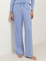 Прямые брюки с поясом на резинке из фактурного трикотажа в рубчик