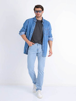 Мужские классические джинсы с пятью карманами. Посадка Regular fit (полуоблегающие по бедру), высокая талия. Застежка на молнии. Немного заужены в колене и по низу. Выполнены из традиционной хлопковой ткани denim, цвет ткани Black/Black (лицевая и изнаночная стороны ткани черные). Специальная темная стирка без потёртостей.