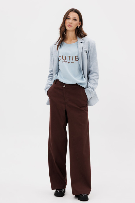Джинсы wide leg- это модель со свободной посадкой, широкими штанинами и расклешением от бедра. Если классический прямой фасон выглядит формально, то wide leg придает образу более расслабленный вид и за счет расширения книзу, джинсы отлично вытягивают силуэт. Джинсы сложного кроя, с эффектом закрученности: шаговый и боковой шов, застежка смещенные , что создает иллюзию еще большего вытягивания силуэта. Модель свободного кроя, с 5-ю карманами, притачным поясом со шлевками.