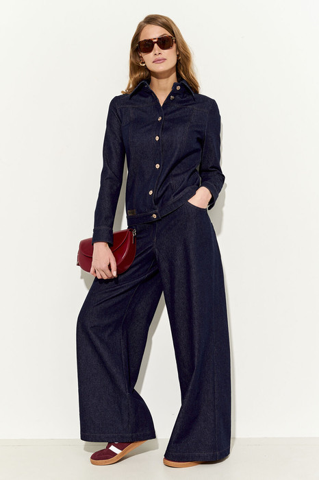 Стильные женские джинсы выполнены из натуральной хлопковой ткани классического глубокого синего цвета, прилегающие в области талии и бедер, расширенные к низу; по переду и спинке функциональные карманы; застежка на молнию, петлю и пуговицу. Джинсы полностью соответствует заявленному размеру. Пожалуйста, пользуйтесь таблицей замеров готового изделия, чтобы подобрать идеальный размер.