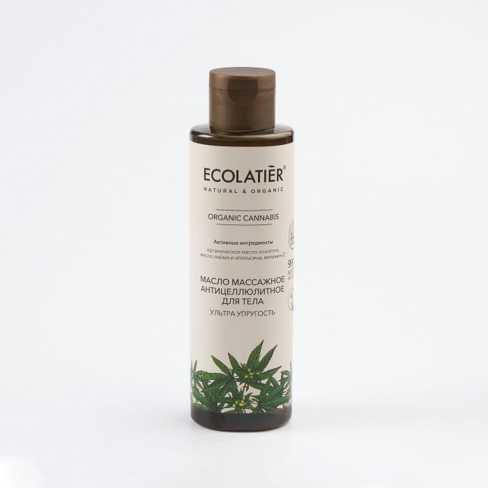 Ecolatier Масло массажное антицеллюлитное для тела Ультра упругость Organic Cannabis с маслом семян конопли и активными ингредиентами в составе обладает антицеллюлитным эффектом, стимулирует лимфодренаж и расщепление жировых отложений, нормализует обменные процессы на клеточном уровне, повышает эластичность кожи.