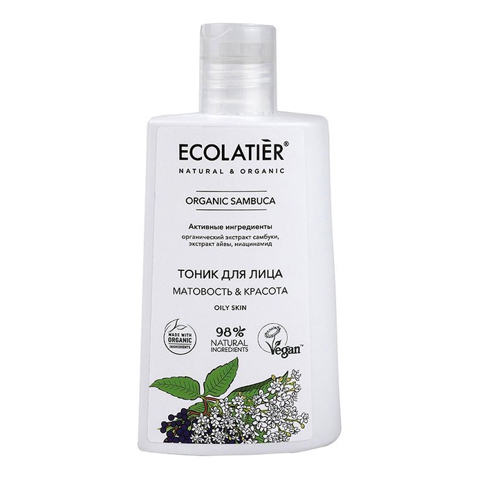 Тоник для лица ECOLATIER• ORGANIC Sambuca убирает излишки себума с проблемной и скпонной к жирности кожи, сужает поры, снимает раздражение и тонизирует. Восстанавливает гидра-липидный баланс, подготавливает кожу к дальнейшему уходу.