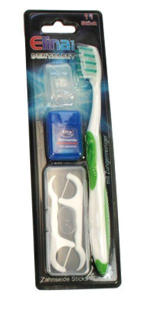 В наборе: 1 зубная щетка 1 зубная нить 15 м 8 флосс зубочисток 1 чехол для зубной щетки