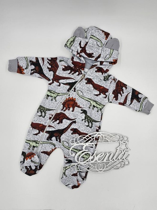 Совместные покупки Пермь Детская одежда Одежда для новорожденных — ESENIA Комбинезон с капюшоном для малышей с начесом Серый динозавры