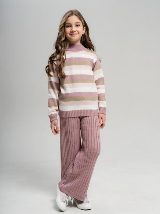 ESENIA Костюм для девочки вязаный в полоску Тёмно-розовый