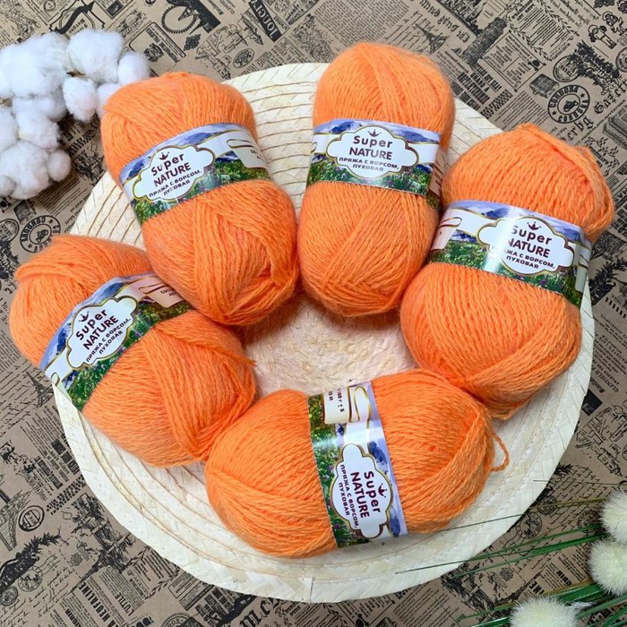Совместные покупки Пермь Творчество, рукоделие Товары для вязания — ESENIA Пряжа для вязания Super Nature с козьим пухом - Оранжевый
