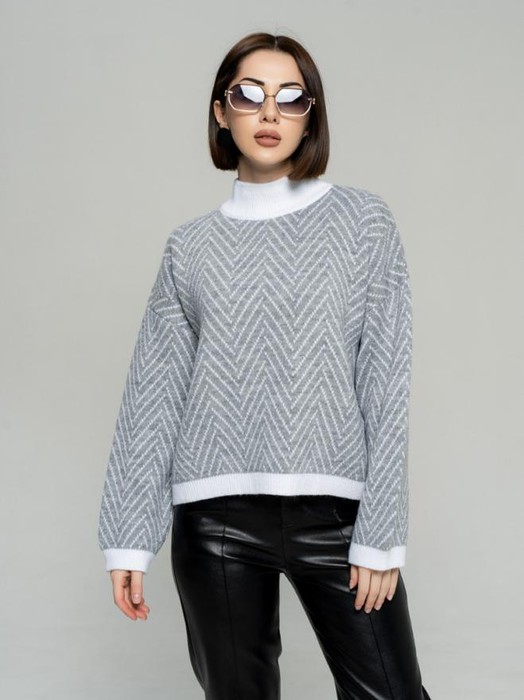 ESENIA Свитер молодежный полушерстяной оверсайз - Бело-серый