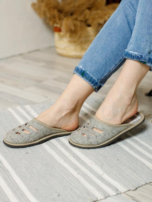 Войлок с шерстью производит "сухое" тепло, которое отлично греет, но не вызывает потоотделение. Ворсинки шерсти активно массируют стопу стимулируя кровообращение.