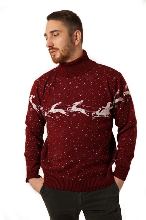Совместные покупки Пермь Мужская одежда Водолазки — ESENIA Водолазка мужская полушерстяная толстой вязки - Бордовый с оленями