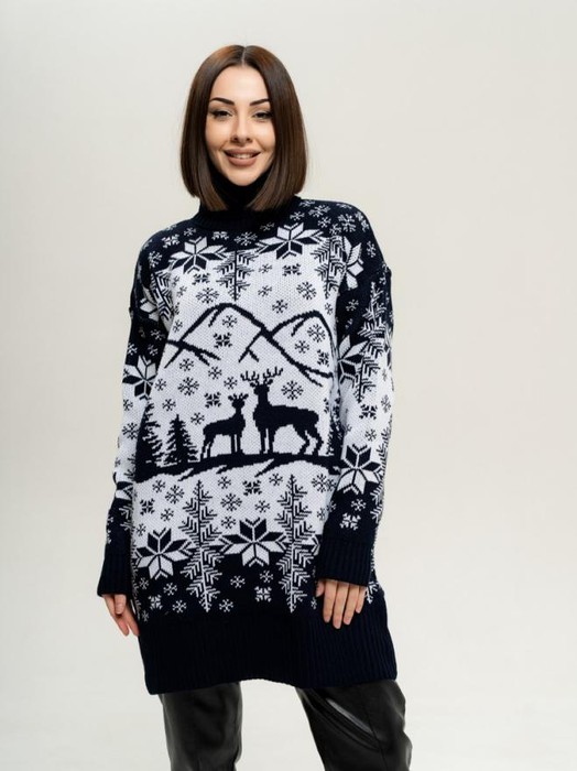 ESENIA Водолазка женская полушерстяная удлиненная - Тёмно-Синий