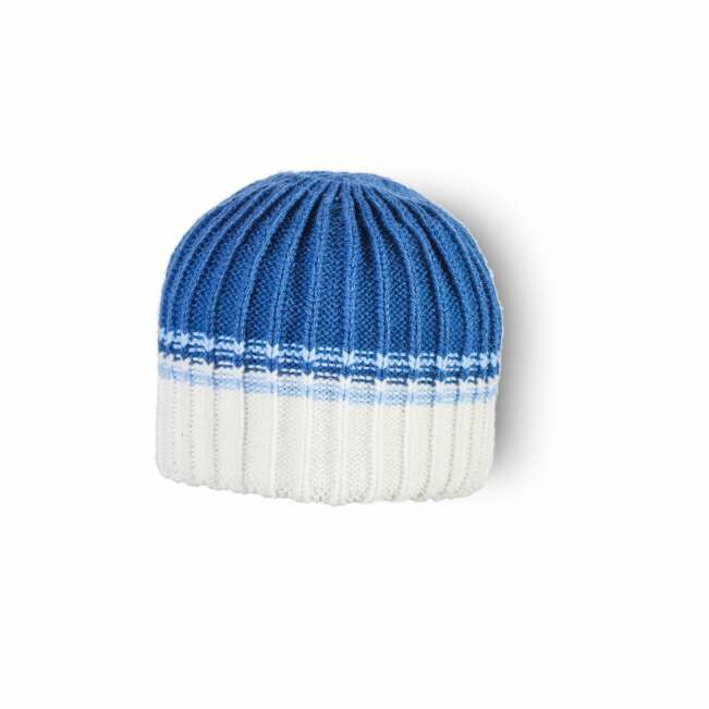 Шапка детская без отворота с вывязанным и стянутым верхом, с имитацией отворота контрастными цветами и объемной вязкой английская резинка.