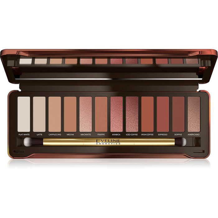 Палетка теней , состоящая из 12 коричнево-шоколадных шикарных оттенков: ярких мерцающих, кремовых матовых, изысканных шиммерных, с мелкодисперсным пигментом, и сатиновых, позволяет наносить тени в несколько слоев бесконечным количеством способов.Каждый из них назван в соответствии с похожим по оттенку видом кофе. Эта палетка приносит истинное наслаждение при создании макияжа. Идеальная для любого случая! Комфортная, роскошная и неповторимая! Каждый оттенок теней обладает бархатистой текстурой и насыщенным цветом, легко тушуется, не осыпается и в течение долгого времени остается на веке. С палеткой Charming Mocha Вы сможете сделать и естественный ежедневный макияж, и эффекный макияж на вечер. В состав палетки входит также профессиональная двухсторонняя кисть, предназначенная для нанесения и растушевки теней, с помощью которой Вы сможете создать плавные переходы между цветами.