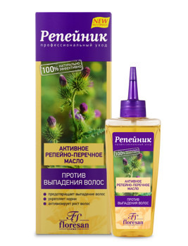 Мера: шт. Артикул: 5749 Производитель: Флоресан ООО, Россия ID производителя: 39 Активное репейно-перечное масло «Репейник» Формула: 82 Репейно-перечное масло это мощное, проверенное временем средство против облысения при различных причинах выпадения волос. Активные компоненты масла репейника и перца внедряются в структуру кожи, укрепляя и питая корни волос. Подходит при умеренном и обильном выпадении волос, а также как профилактическое средство. Особенно эффективно в сочетании с шампунем и другими средствами серии «Репейник». При нанесении может чувствоваться легкое жжение, которое проходит после смывания масла. Способ применения: равномерно нанести масло на кожу головы, для усиления эффекта средства можно покрыть голову пленкой и укутать теплым полотенцем. Оставить на 15-20 минут, затем смыть шампунем серии «Репейник». Избегать попадания в глаза. Состав: Glycine Soia Oil, Arctium Majus Extract, Capsicum Annuum Extract, Parfume, Tocopheryl Acetate, Abies Sibirica Needles Extract. Объем: 100 мл.