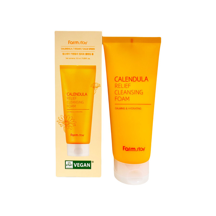 FarmStay Calendula Relief Cleansing Foam это мягкий очищающий пенящийся гель для лица, обогащенный экстрактом календулы.