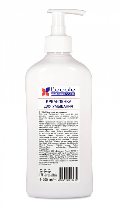 Состав/Ingredients: Aqua, Panthenol (Д-пантенол), Argania Spinosa Kernel Oil (масло арганового дерева), Cocamidopropyl Betaine, Cucurbita Pepo Fruit Extract (экстракт тыквы), Hyaluronic Acid (кислота гиалуроновая), Potassium Cocoate, Lactic Acid (кислота молочная), Tocopheryl Acetate (Витамин Е), Glycerin, Juglans Regia Seed Oil (масло грецкого ореха), Myristic Acid, Stearic Acid, Potassium Hydroxide, Glycol Distearate, Glyceryl Stearate, PEG-100 Stearate, Parfum, Phenoxyethanol, Methylparaben, Ethylparaben, Propylparaben.