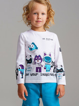Футболка для мальчика классического покроя: с короткими втачными рукавами, горловиной овальной формы, обработанной втачной планкой, и принтом в центре переда, выполненным в технике шелкографии. По шву втачивания планки в горловину настрочена отделочная строчка на двухигольной машине. неижние срезы рукавов и изделия обработаны подгибкой.