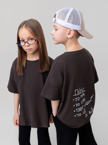 Футболка из меланжевого трикотажа, декорированная зеркальным принтом в виде зебры с бахромой по бокам. Свободный крой, круглый вырез горловины, декоративный вырез на спинке снизу.На ребенке представлен размер 140:- Ширина изделия по линии груди 39,5 см- Ширина по низу изделия 42 см- Длина изделия 55,5 смРазница между размерами составляет 1,5 см.