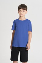 Трикотажная футболка, декорированная ярким принтом с деталями из блесток. Прямой крой, круглый вырез горловины, короткие рукава с отворотами.На ребенке представлен размер 110:- Ширина изделия по линии груди 30 см- Ширина по низу изделия 31 см- Длина изделия 39 смРазница между размерами составляет 1,5 см.