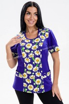 Яркая модель футболки с карманами прекрасно подойдет для летних прогулок или отдыха. Футболка полуприлегающего силуэта с рельефными швами, которые подчеркивают женскую фигуру делая силуэт более стройным, а контрастные вставки создают акценты, которые придают образу нотку свежести и яркости.