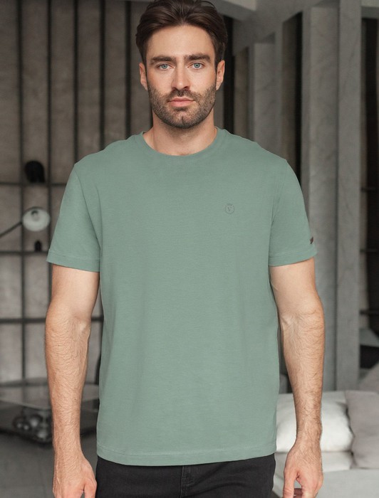 Однотонная футболка выполнена в минималистичном стиле, дополнена аккуратной вышивкой на груди в виде буквы V в тон изделия, а так нашивкой на рукаве из эко-кожи с логотипом VILATTE. Подходит как классический вариант для работы в офисе под пиджак, так и для повседневной носки или занятий спортом. Мягкая ткань приятна к телу, не вызывает дискомфорта и идеально подходит для дома или летних прогулок благодаря короткому рукаву.