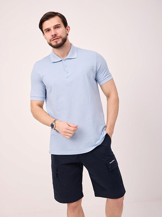 Классическая мужская футболка поло F5, Regular fit (полуприлегающий силуэт), с вышивкой-фирменным логотипом. Выполнена из трикотажного полотна пике (pique). С отложным воротником и короткими рукавами. Застежка-планка застегивается на 3 пуговицы.