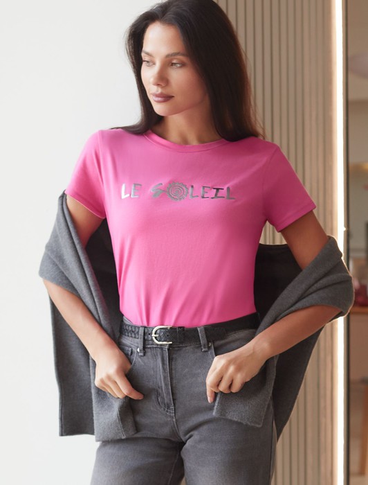Состав: 100%Хлопок Плотность: 140 Г/м2Футболка прямого кроя выполнена из 100% хлопка. Базовая модель дополнена лаконичным авторским принтом. Легко впишется в повседневный гардероб. Изделие хорошо держит форму и обеспечивает комфортный микроклимат в течение дня. Перевод надписи на принте: "le soleil (фр.) - солнце"