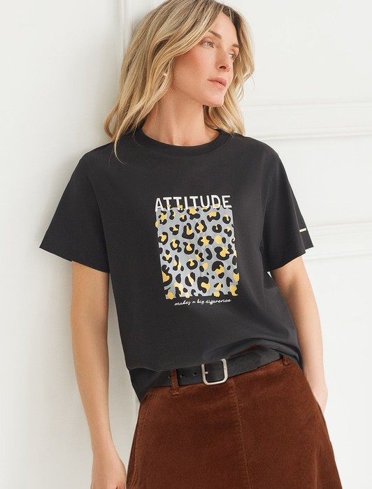 Состав: 92%Хлопок 8%ПУ Плотность: 170 Г/м2 Параметры модели на первом фото: Рост 172, бюст 88, талия 64, бедра 88Перевод принта: Attitude makes a big difference - от отношения зависит многое. Футболка выполнена из премиального хлопка. Авторский принт нанесен фактурными красками с устойчивым покрытием. Наличие эластана в составе гарантирует комфорт и формоустойчивость. Изделие дополнено фирменным металлическим логотипом бренда.