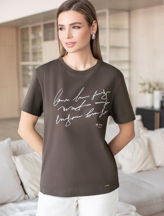 Состав: 92%Хлопок 8%ПУ Плотность: 170 Г/м2 Параметры модели на первом фото: Рост 170, бюст 89, талия 63, бедра 92Футболка выполнена из премиального хлопка. Авторский принт нанесен красками с устойчивым покрытием. Перевод: «Be different, just be yourself - Отличайся, будь собой» Наличие эластана в составе гарантирует абсолютный комфорт и долговечность изделия. Базовая модель впишется в любой гардероб. Дополнительным украшением служит металлическим логотипом бренда.