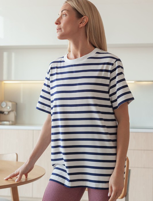 Состав: 92%Хлопок 8%ПУ Плотность: 170 Г/м2 Параметры модели на первом фото: Рост 170, бюст 89, талия 63, бедра 92Футболка выполнена из премиального хлопка. Наличие эластана гарантирует абсолютный комфорт и долговечность изделия. Модель в полоску предлагаем сочетать с однотонными вещами базовой палитры. Изделие дополнено металлическим логотипом бренда.