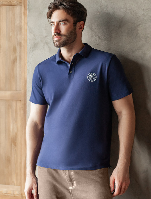 Состав: 92%Хлопок 8%ПУ Параметры модели на первом фото: Рост 190, бюст 108, талия 87, бедра 104 Размер товара на первом фото: 54Футболка-поло выполнена из фактурного трикотажа. Модель с прямого кроя с небольшими разрезами по бокам дополнена вязаным воротником вышивкой с компасом. Премиальный хлопковый трикотаж гарантирует комфорт и износостойкость. На рукаве брендированная металлическая нашивка.