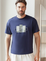 Vilatte Свободная футболка с авторским принтом U49.048 т.синий_explore прямоуго