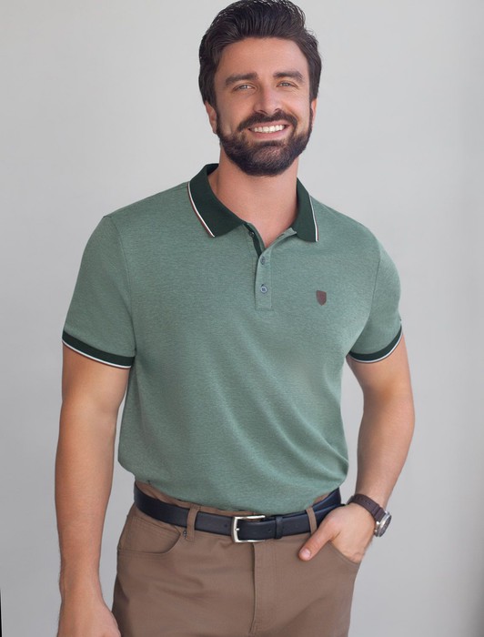 Совместные покупки Пермь Мужская одежда Джемперы, свитеры — Футболка поло с воротником на пуговицах из полотна пике с меланжевым плетением с