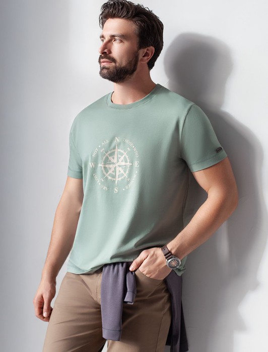Состав: 92%Хлопок 8%ПУ Плотность: 170 Г/м2Футболка светло-оливкового цвета из премиального хлопка с эластаном плотностью 170 Г/м2 станет универсальным решением для любого случая. Прямой крой обеспечивает комфортную посадку на любую фигуру, включая большие размеры, подходит как на низкий, так и на высокий рост. Благодаря сочетанию натурального хлопка и эластана, ткань отлично дышит и слегка тянется, сохраняя форму после стирок. Однотонная футболка выполнена в минималистичном стиле, дополнена принтом в виде изображения компаса и надписи. Перевод надписи: Not all those who wander are lost - Не все те, кто странствует, потеряны. На рукаве нашивка из эко-кожи с логотипом VILATTE. Подходит как классический вариант для работы в офис, так и для повседневной носки или занятий спортом. Мягкая ткань приятна к телу, не вызывает дискомфорта и идеально подходит для дома или летних прогулок. Простая и практичная футболка с коротким рукавом станет базовым элементом вашего гардероба. Она легко сочетается в спортивном или классическом стиле.