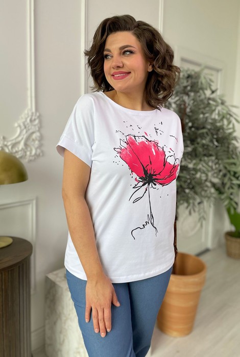 Совместные покупки Пермь Женская одежда Футболки — Футболка Rumoda 2062 белый+коралл