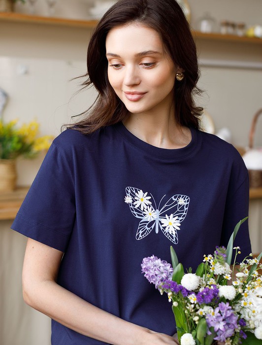 Особое внимание привлекает стильный принт в виде бабочки с цветами. Принт выполнен красками с устойчивым покрытием, который добавляет изделию оригинальности и позволяет выразить индивидуальность.