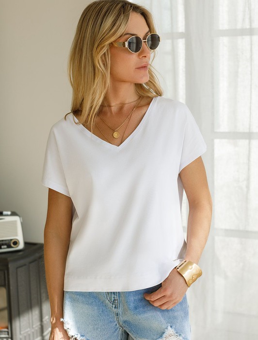 Совместные покупки Пермь Женская одежда Костюмы, комплекты — Футболка с V-вырезом и цельнокроеным рукавом из премиального хлопка с эластаном