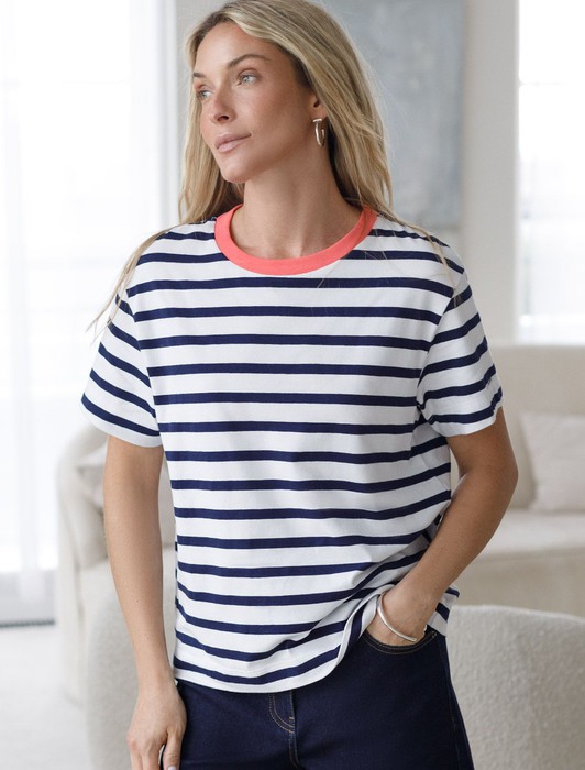 Состав: 92%Хлопок 8%ПУ Плотность: 170 Г/м2 Параметры модели на первом фото: Рост 172, бюст 88, талия 64, бедра 88 Размер товара на первом фото: 42Базовая футболка в бело-синюю полоску выполнена из премиального дышащего хлопка с добавлением эластана. Эта футболка идеально подходит для создания стильного образа. Классический вариант на лето или как нижний слой в прохладное время года.Футболка отлично держит форму и не теряет привлекательности даже после многочисленных стирок. Базовая полосатая футболка с ярким акцентом легко комбинируется с различными предметами гардероба и станет неотъемлемой частью вашего образа. Футболка из натурального хлопка идеально подойдет для создания стильных и молодежных образов. Модная футболка в полоску – это возможность выразить себя и подчеркнуть свою уникальность.