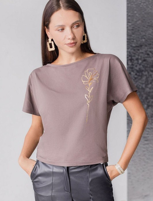 Совместные покупки Пермь Женская одежда Футболки — Футболка Vilatte D49.133 кофейный_цветок