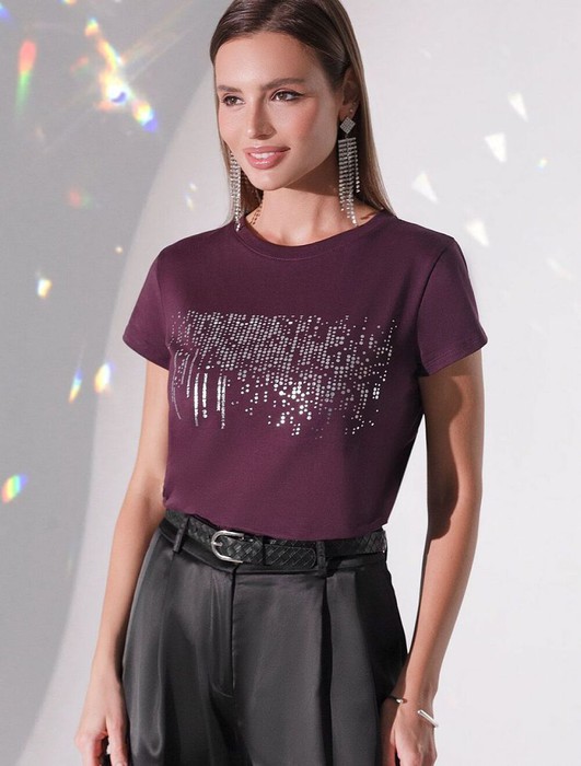 Эта нарядная футболка подходит для создания образа на каждый день и идеально подойдет на выход. Модель не мнется, что делает ее практичным вариантом для активных женщин, которые ценят стиль и удобство.