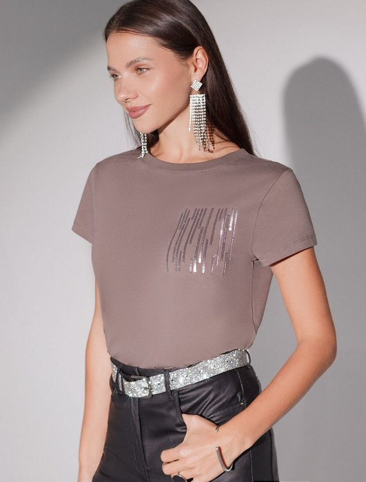 Совместные покупки Пермь Женская одежда Футболки — Футболка Vilatte D49.135 кофейный_блестки