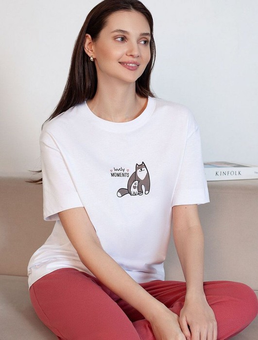 Совместные покупки Пермь Женская одежда Футболки — Футболка Vilatte D49.158 белый_коты